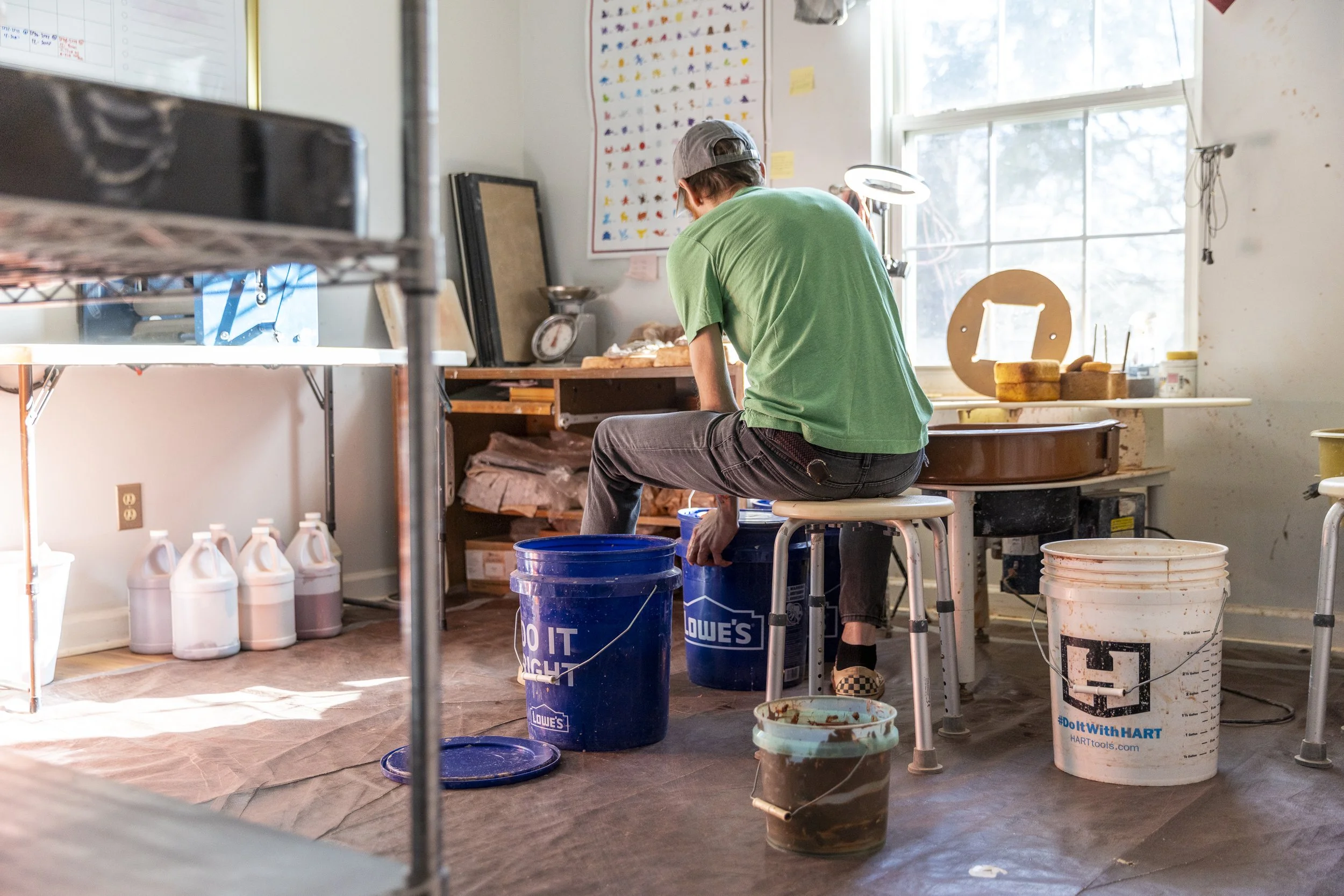 We’re excited to share two more hands-on creative processes we captured earlier this year. This second edition of Local Markers will introduce you to potter Phillip Strauss, and fourth-generation textile artist Alyssa Fea. Both of these artisans devote themselves full-time to their crafts. Phillip sells his creations each week at the Ix Park Farmer’s Market in Charlottesville, and also teaches pottery at The Arts Center in Orange, Virginia. Alyssa works out of her studio providing custom embroidery services, in addition to participating in pop-up events. We hope you enjoy this more intimate look into the work we captured for them.
